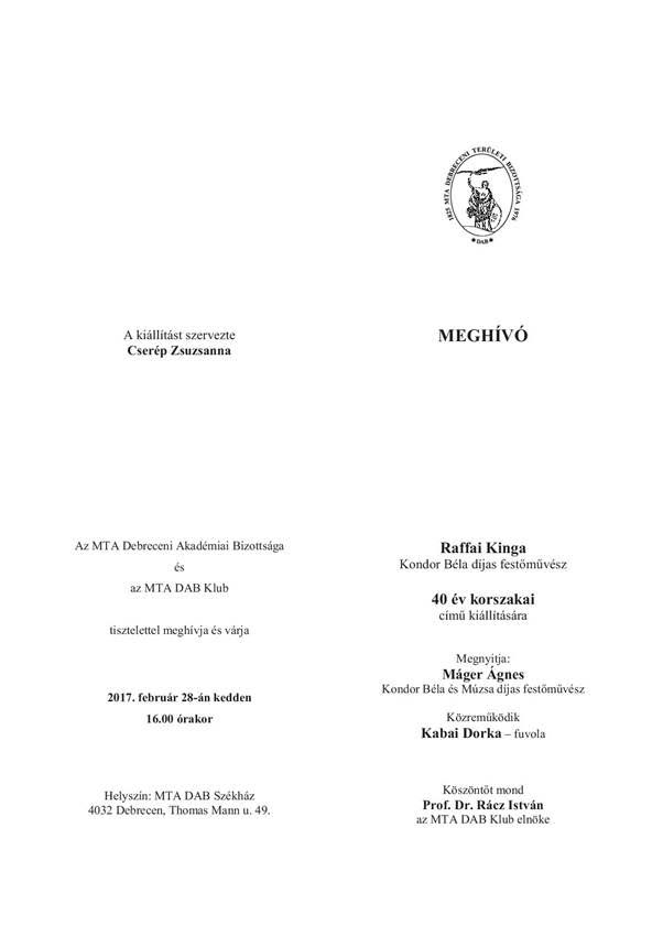 Raffai Kinga műveiből nyílik kiállítás Egyetem Kultúra február 23, 2017február 24, 2017Szabolcs SzilágyiSzóljon hozzá a Raffai Kinga műveiből nyílik kiállítás bejegyzéshez Helyszín: DAB székház