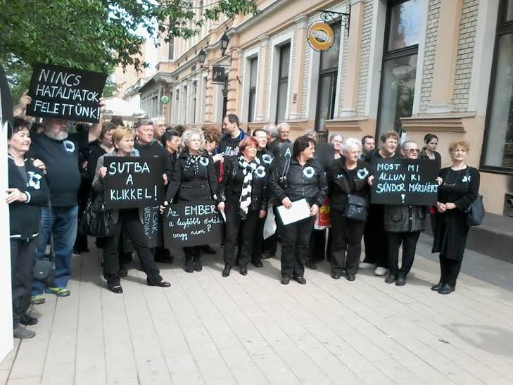 Péntek délután “Feketeruhás villámcsődület”-re hívták a debreceni lakosokat, csatlakozva az országos akcióhoz. Kezdeményezték, legyen április 15-e Debrecenben is a feketeruhás szolidaritás napja! A szervezők azt kérték, mindenki fejezze ki szolidaritását Sándor Máriával, öltözzünk feketébe, tűzzük ki az összefogás fekete-fehér szalagját. Fejezzük ki, hogy együtt érzünk Sándor Máriával, az egészségügy áldozataival és mellőzöttjeivel.