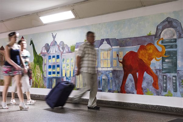 A Nyíregyházi Művészeti Szakközépiskola diákjainak a megyeszékhely nevezetességeihez kötődő munkái díszítik a nyíregyházi vasútállomás aluljáróját 2016. június 23-án. A MÁV Debreceni Igazgatósága által kiírt pályázaton győztes művészeti iskola 12 festő és grafikus növendéke egy hét alatt festette meg a 120 négyzetméternyi falat az aluljáróban. MTI Fotó: Balázs Attila