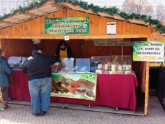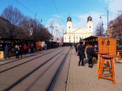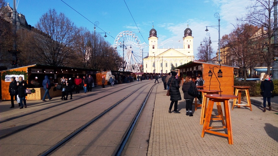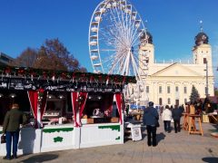 Sokféle portéka várja a vásárlókat és az érdeklődőket a debreceni adventi vásáron. A Kossuth téren óriáskerék is várja a nagyérdeműt.