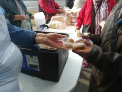 A villámcsődület utáni ételosztáson ebben az évben talán a legtöbben vettek részt. Közöttük utcán élők, kisnyugdíjasok, egykor szebb napokat látott honfitársaink. Szomorúan láttuk, hogy nagyon sokan jöttek kisgyermekkel, rokkant kocsival. A már ismert arcok mellett sok ismeretlen is volt, Debrecen külső városrészéből, Pacról is érkeztek felebarátaink. A több mint 150 vendéget töltött káposztával, friss kenyérrel és egy szelet tortával vártuk.