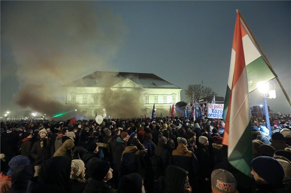 A kormány és a köztársasági elnök ellen tüntettek ellenzéki pártok, civil szervezetek és szakszervezetek pénteken Budapesten, a Sándor-palota előtt azt követően, hogy Áder János aláírta az önkéntes túlmunkaidő bővítéséről és a közigazgatási bíróságok felállításáról szóló törvényeket.
