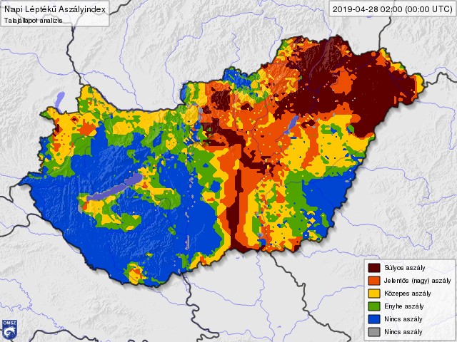 A vízhiány a felső 1 méteres rétegben továbbra is magas, általában 60 és 110 milliméter közötti, további eső kellene a talajok átnedvesítéséhez, a növények ideális fejlődéséhez. Kecskemét térségében továbbra is 170 milliméterrel kevesebb volt a csapadék az ideálisnál, annak körülbelül a fele hullott le. Nyíregyháza környékén valamivel jobb a helyzet, itt 110 milliméter körüli az elmaradás, az ideálisnak körülbelül a kétharmada esett a vetés óta.
