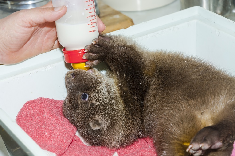 Mentett vidrakölyköt (Lutra lutra) nevelnek a Szegedi Vadasparkban, a tízhetes állatot egy gondozó cumisüvegből táplálja – közölte Veprik Róbert igazgató az MTI-vel.