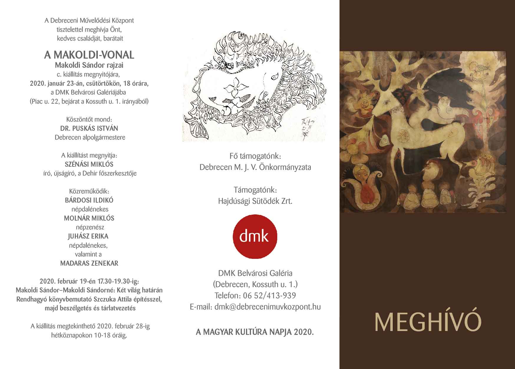 A Magyar Kultúra Napjának városi eseménysorozatában kiemelt helyet foglal el a Makoldi Sándor rajzait bemutató kiállítás, A Makoldi-vonal címmel, mely a Debreceni Művelődési Központ Belvárosi Galériában (Kossuth u. 1.) nyílik 2020. január 23-án, csütörtökön, 18.00 órakor.