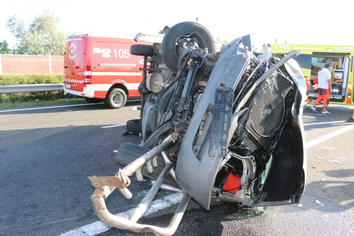 A rendőrség tájékoztatása szerint a baleset reggel 6 óra után történt: egy Budapest felé haladó román kisbusz az autópálya 105-ös kilométerénél felborult.