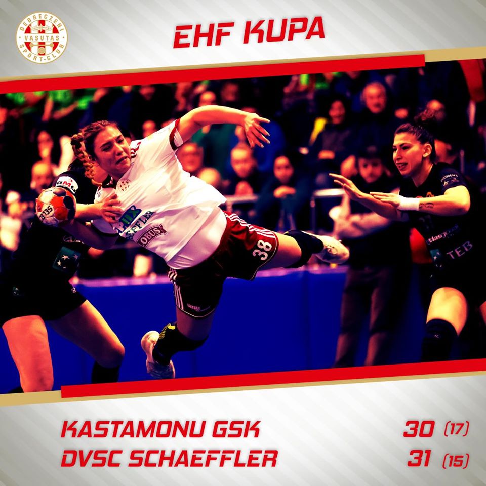 A DVSC 31-30-ra győzött szombaton a török Kastamonu Belediyesi GSK otthonában a női kézilabda EHF Kupa csoportkörének első fordulójában.
