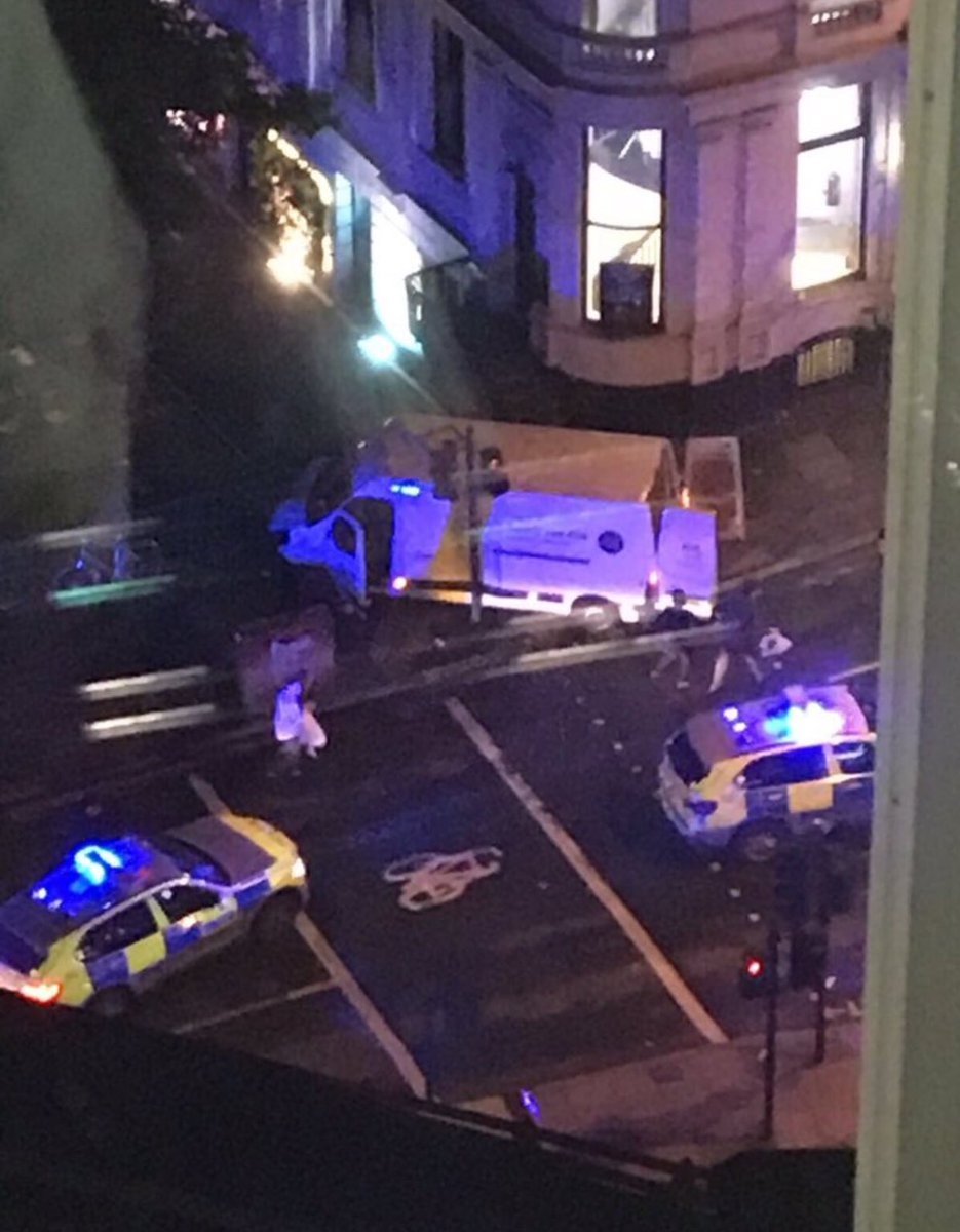 A London hídon (London Bridge) egy fehér furgon nagy sebességgel felhajtott a járdára és több gyalogost elütött, majd a járműből szemtanúk beszámolója szerint három vagy négy ember kiugrott és késsel támadt a járókelőkre a közeli piac, a Borough Market környékén.