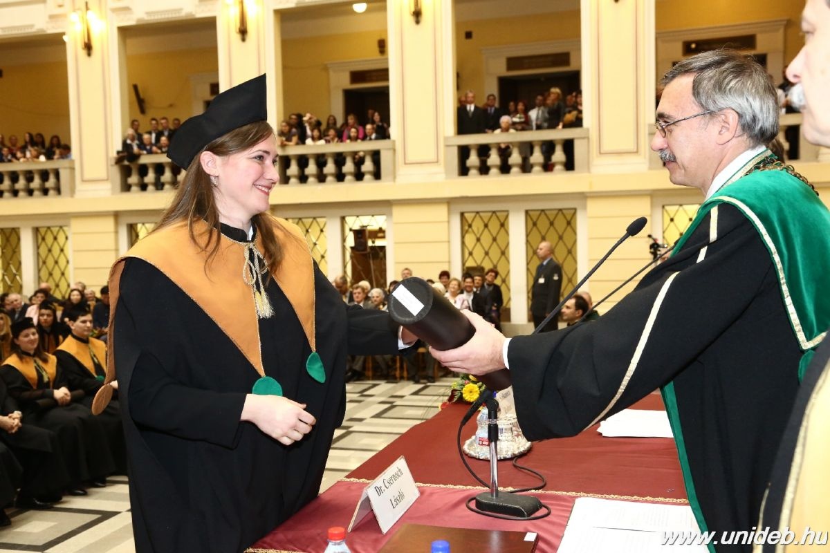 A Debreceni Egyetem Szenátusa vasárnap a Díszudvaron rendezte meg orvosdoktor-avató nyilvános tanácsülését, amelyen 65 végzős diák kapott diplomát, közülük heten summa cum laude minősítéssel. Az angol programban oklevelet szerző 21 külföldi és a 44 magyar diákot Csernoch László tudományos rektorhelyettes és Mátyus László dékán köszöntötte, és látta el útravaló gondolatokkal.