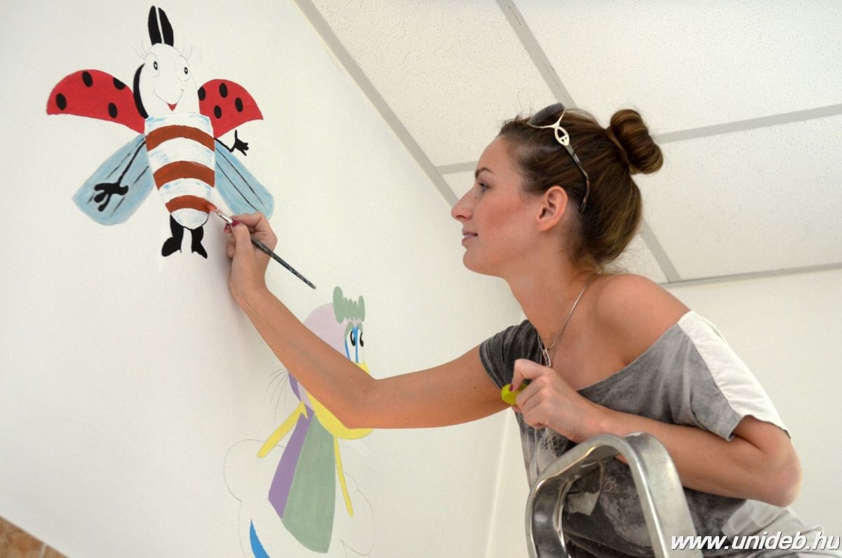 Az egy tucat segítőkész fiatal látott hozzá péntek délelőtt a dekorációhoz, hogy szombat estére Pom Pom, Frakk, Vuk és Vízipók díszíthesse a pulmonólógiai osztály kórtermeit. A Rotary Klub ifjúsági szervezetének tagjai, a Rotaract Club Debrecen Főnix önkéntesei az Ecsetre fel a Gyermekekért országos kampány kitalálójával, Mannheim Viktóriával fogtak össze, hogy mesefigurákkal tegyék vidámabbá a gyerekek mindennapjait a klinikán.