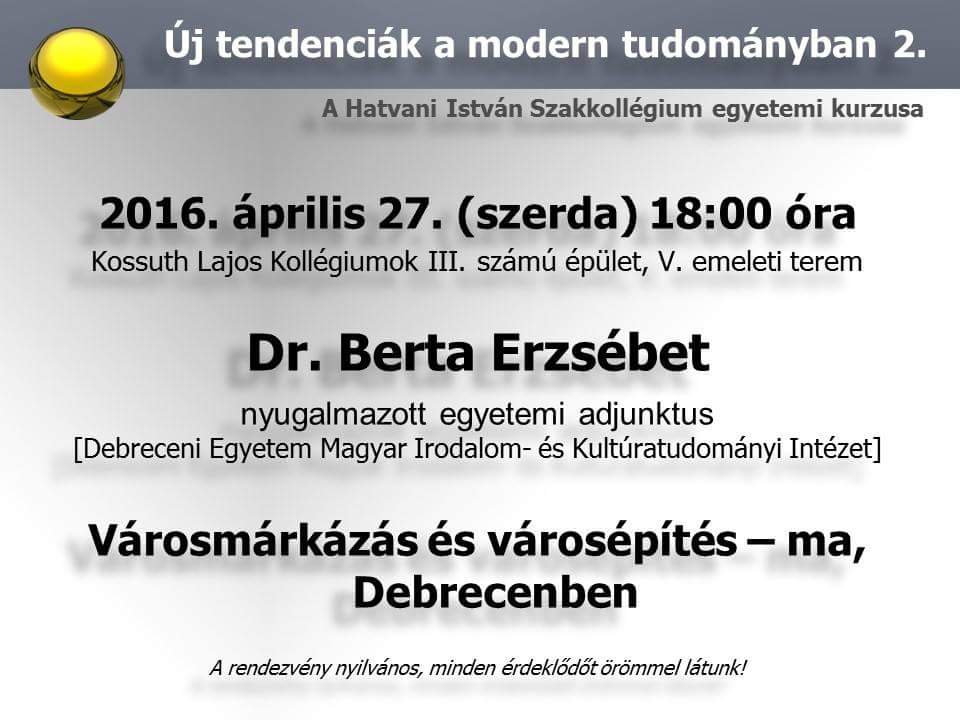 Ingyenes előadás a Hatvan István szakkollégiumban.