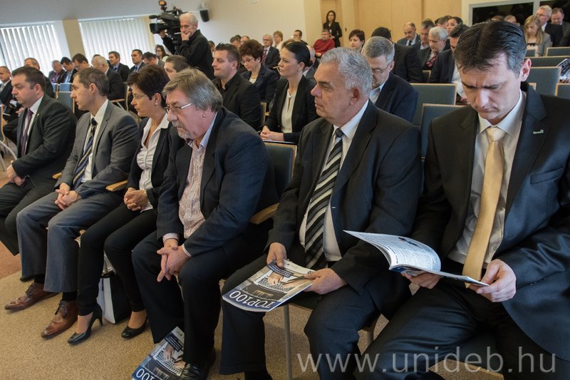 A tudásközpontok kiemelt szerepéről is szó volt a TOP 100 kiadványt bemutató gálán csütörtökön. Előadásában Szilvássy Zoltán rektor az intézményi oktatásfejlesztési és kutatási törekvések mellett a Debrecen-Nagyvárad-Kassa innovációs-gazdasági együttműködési folyosóról beszélt.