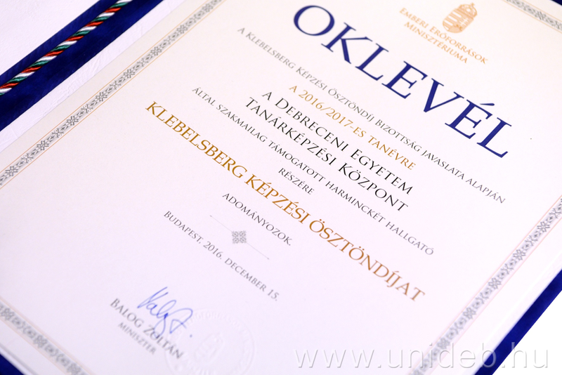 A Debreceni Egyetem 32 hallgatója részesül Klebelsberg Képzési Ösztöndíjban a 2016/2017-es tanévben. A támogatást idén is osztatlan tanárképzésben tanulóknak ítélte oda a szaktárca.