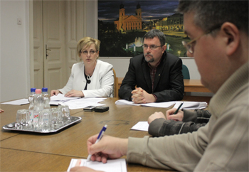A szociális ellátórendszer változásairól tartott sajtótájékoztatót Komolay Szabolcs alpolgármester és Bene Edit, a humán főosztály vezetője 2015. február 27-én.