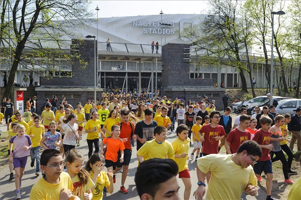 Résztvevők a VIII. Debreceni Nárcisz Futófesztiválon a Nagyerdei Stadionnál 2016. április 7-én. A Méltóság mezeje program keretében megrendezett futáson több ezren futottak az emberi méltóság iránti tisztelet, egymás elfogadása és az élet szeretete jegyében. MTI Fotó: Czeglédi Zsolt