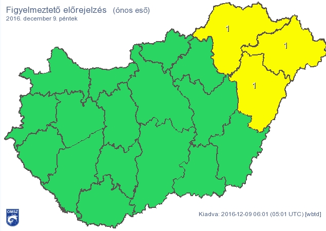 Borsod-Abaúj-Zemplén, Hajdú-Bihar és Szabolcs-Szatmár-Bereg megyékben kell számítani gyenge ónos esőre a reggeli, délelőtti órákban – olvasható az Országos Meteorológiai Szolgálat előrejelzésében.