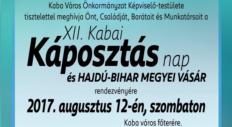 2017. augusztus 12-én, szombaton immár XII. alkalommal rendezik meg a kabai káposztás napot, idén először a rendezvény megyei vásárral is kiegészül.