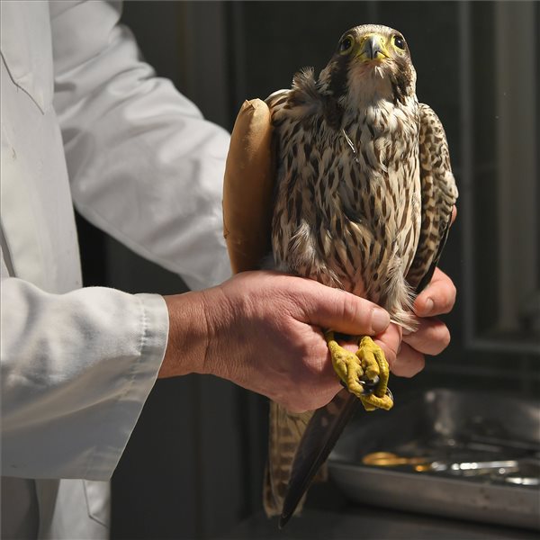 Friss felkarcsonttörést szerzett vándorsólyom érkezett a Mályi Madármentő Állomásról. A madarat valószínűleg meglőhették.
