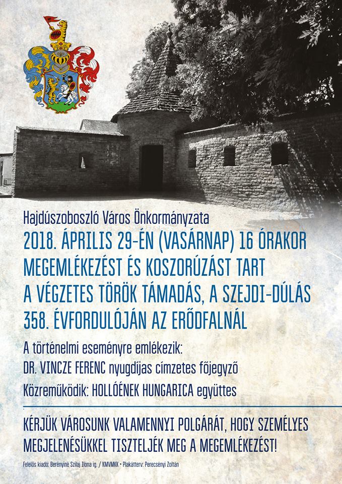 A Szejdi-dúlás 358. évfordulójára emlékeznek Hajdúszoboszlón a Kálvin téren (az Erődfalnál) április 29.-én.