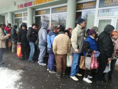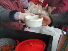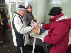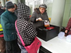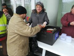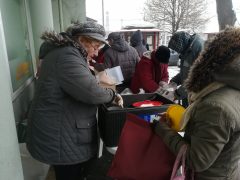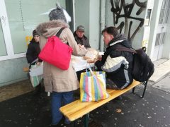 A mai ételosztást – nagy örömünkre -péksüteményekkel segítette két albán pékség. Hálásan köszönjük a debreceni Future Verona Kft-nek és a miskolci Toti Pékségnek a felajánlásukat. Adományuk jó helyre került, hiszen egyre több a szegény ember, mind többen állnak itt Debrecenben is a sorban ebédre várva. Ma is a nagy hideg ellenére, már a kezdés előtt egy órával közel ötvenen várták, hogy ételt kapjanak. A menü -közkívánatra- töltött káposzta volt, ahogy arról, korábban a sorban állók szavaztak.