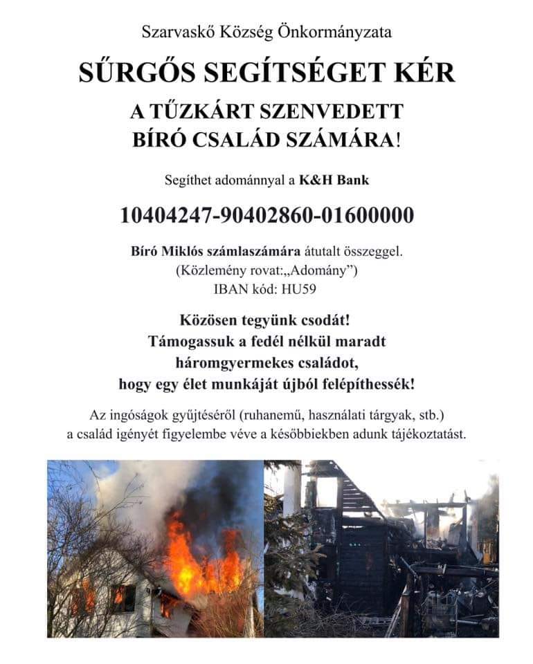 Szerencsére személyi sérülés nem történt és a család szeretné mihamarabb újjáépíteni a házukat. Ehhez viszont jelentős anyagi forrásra van szükségük.