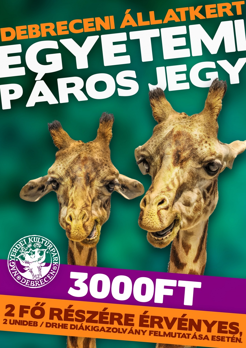 A Debreceni Állatkert, Növénykert és Vidámpark egy újdonsággal örvendezteti meg a debreceni felsőoktatásban tanulókat. A kikapcsolódni vágyó egyetemisták számára február 21-től lehetőség nyílik egy kedvezményes belépő, az Egyetemi Páros Jegy megváltására.