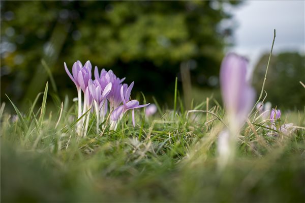Virágzó őszi kikericsek (Colchicum autumnale) a Mecsekben, Kisújbánya közelében 2019. szeptember 22-én. MTI/Sóki Tamás