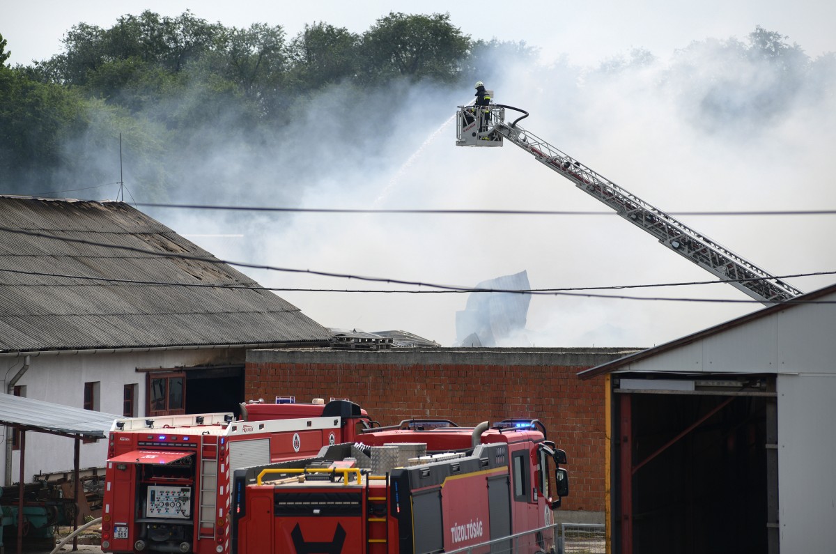 Kigyulladt egy faipari épület Hajdúböszörményben, 45 tűzoltó küzd a lángokkal