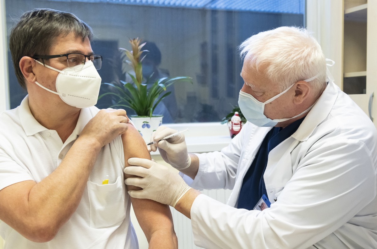 Balázs Attila, az MTI fotósa azt a pillanatot örökítette meg, amikor Szilveszter Zoltán intenzív terápiás főorvos megkapja a Pfizer-BioNTech koronavírus elleni vakcinájának második adagját a nyíregyházi Jósa András Oktatókórházban szombaton.