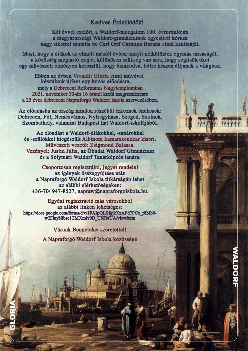 Több mint 200 waldorfos diák alakított kórust az ország minden részéből (Debrecen, Fót, Nemesvámos, Nyíregyháza, Szeged, Szolnok, Szombathely, Budapest 6 iskolája), hogy így ünnepeljék egyrészt a debreceni Napraforgó Waldorf-iskola 25. születésnapját, másrészt azt, hogy az elmúlt időszakban sokat kellett egymást nélkülözniük, és most újra együtt lehetnek.