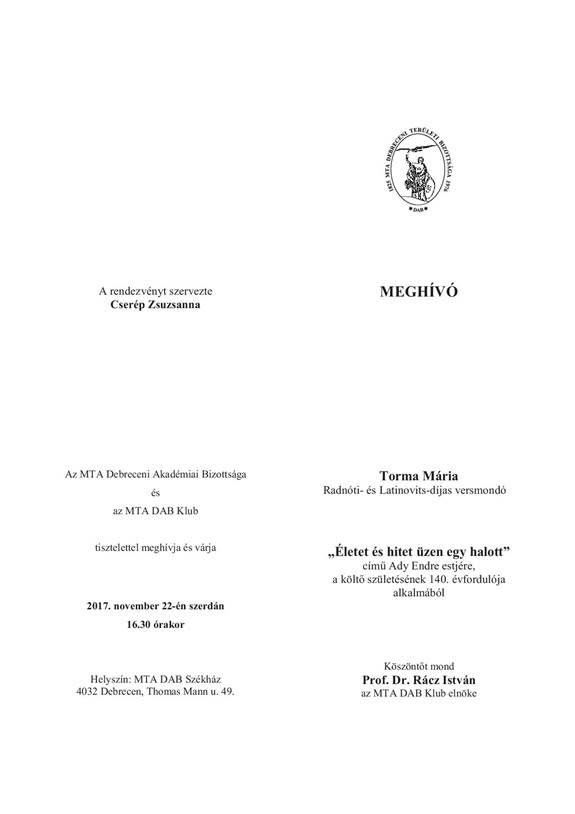 Ady Endre-est lesz a DAB székházban Kultúra november 15, 2017november 16, 2017Szabolcs SzilágyiSzóljon hozzá a Ady Endre-est lesz a DAB székházban bejegyzéshez Közreműködik: Torma Mária, Radnóti- és Latinovits-díjas versmondó. Nézd meg Debrecen legjobb ár/érték arányú ingatlanjait Kiadó és eladó lakások egy helyen – Írisz Ingatlan Megnézem az ajánlatokat → Tetszett? Oszd meg másokkal is!
