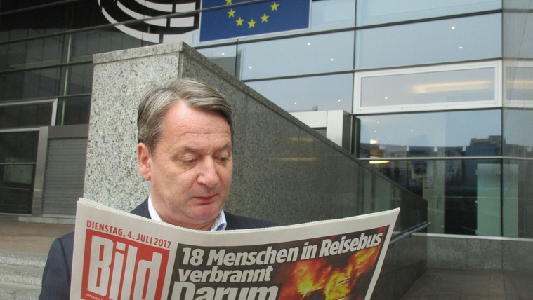 “Nem Abháziában bujkálok, hanem Brüsszelben dolgozom” – közölte a politikus, aki olyan fotókat osztott meg, amelyen az Európai Parlament épülete előtt egy keddi keltezésű Bild című újsággal látható.