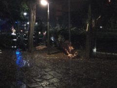 Kidőlt fa akadályozta a közlekedést a Borbíró téren pénteken. A helyszínre érkező tűzoltók levágták a rossz helyre dőlt ágakat.