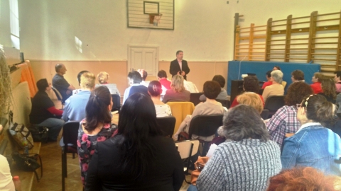 Bak István rendőr alezredes a Hajdú-Bihar Megyei Rendőr-főkapitányság Bűnmegelőzési Osztály munkatársa az internet veszélyeiről tartott tájékoztatást a tantestület tagjainak. Az előadás célja, hogy a tanárok segítséget kapjanak az érintett témakörökkel kapcsolatos, esetlegesen előforduló problémák szakszerű és jogszerű kezeléséhez.