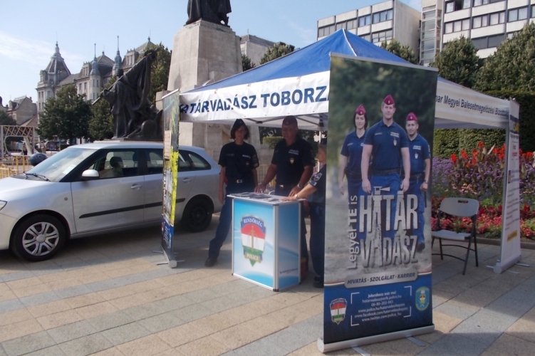 Az ifjú polgárőrök avatásán a Hajdú-Bihar Megyei Rendőr-főkapitányság toborzói és a bűnmegelőzési osztályának szakemberei is várták az érdeklődőket 2017. augusztus 5-én a debreceni Kossuth téren.