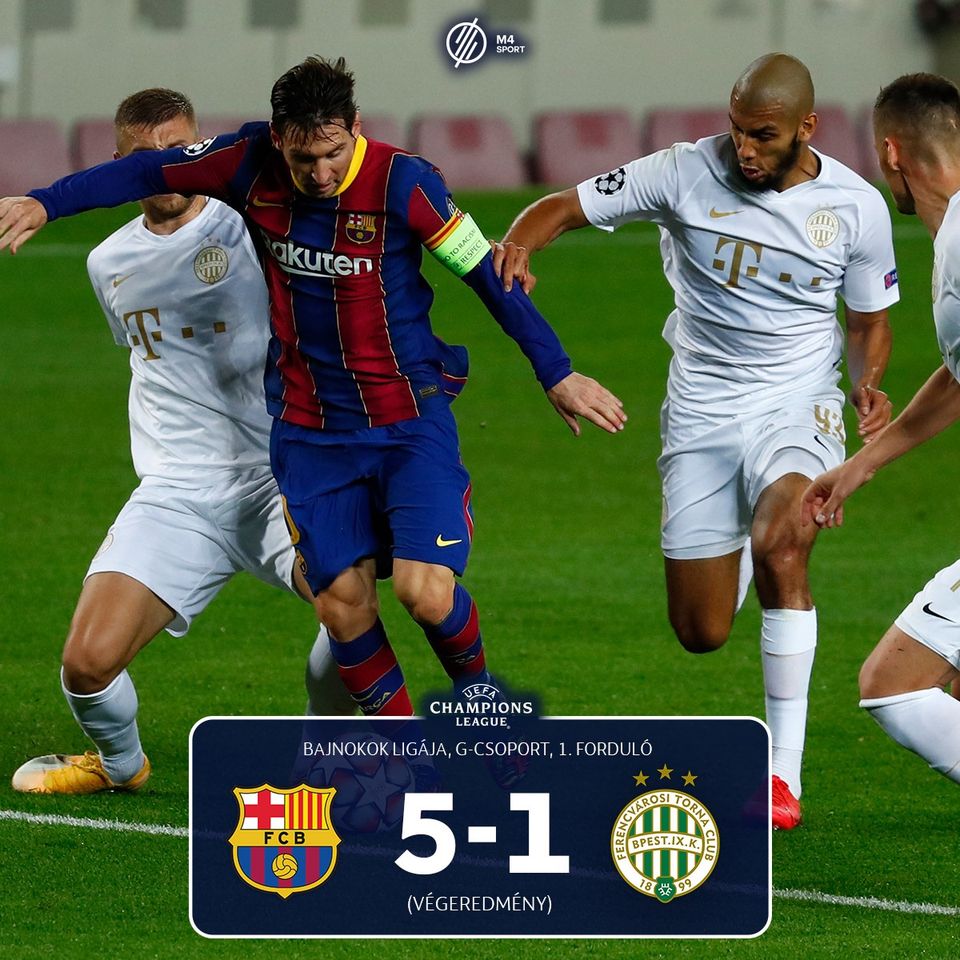 Az emberelőnyben futballozó Ferencváros megpróbált támadni, de egy Dembélé által végig vezetett villámgyors kontra végén a 17 esztendős Pedri talált be, majd Dembélé a 89. percben beállította a végeredményt.